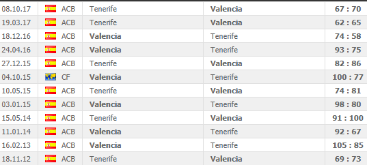 Με αφετηρία καταμέτρησης το έτος 2012, η Βαλένθια δεν έχει ποτέ της ηττηθεί από την Τενερίφη, είτε σε επίσημο παιχνίδι, είτε σε φιλικό.