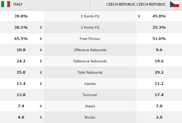 Μπορεί να έχει χάσει όλα τα παιχνίδια της η Σκουάντρα Ατζούρα στο τουρνουά, έχει παλέψει όμως τα 4/5, κάτι που ποτέ δεν έκανε η Τσεχία, που εξαιρουμένης της σεμνής (68-75) ήττας από την Ουκρανία, έχει εθιστεί, στο σενάριο της συντριβής.