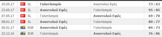 | ΤΟΥΡΚΙΑ (TBSL-ΜΠΑΣΚΕΤ) | ΑΝΑΝΤΟΛΟΥ ΕΦΕΣ-ΓΑΛΑΤΑΣΑΡΑΪ (27/5) | 1 (1,363) | 🙂 (87-76) | 54 | 74 | |