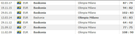 | ΕΥΡΩΠΗ (ΕΥΡΩΛΙΓΚΑ-ΜΠΑΣΚΕΤ) | ΜΠΑΣΚΟΝΙΑ-ΟΛΙΜΠΙΑ ΜΙΛΑΝΟ (19/1) | 1 (1,29) | 👿 (82-83) | 50 | -50 | |