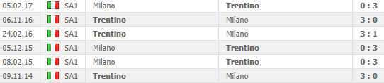 Με αφετηρία καταμέτρησης το έτος 2014 και σε σύνολο 6 παιχνιδιών, η Τρεντίνο μετράει απόλυτο σε νίκες, όλες σε τρίποντο…