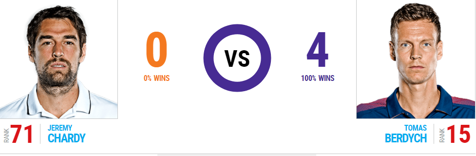 Σε σύνολο 4 αναμετρήσεων, ο – γεννηθείς στο Valasske Mezirici- Τσέχος, μετρά καρέ επιτυχιών (4-0), με επιμέρους 9-2 στα games.