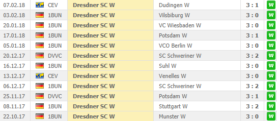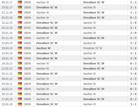 Πληγωμένη η Ντρέσντερ από την εκτός έδρας συντριβή (ούτε σετ δεν πήρε) από τη Σβέριν, έπεσε στην 3η θέση της βαθμολογίας και περιμένει ανυπόμονα την Άαχεν, για να την κερδίσει και να «σηκωθεί» ξανά.