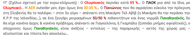 Γεια σου φίλε. Αναπαράγω σε copy paste, τα όσα είχα γράψει αμέσως μετά την κλήρωση των ελληνικών ομάδων, σε Τσάμπιονς + Γιουρόπα Λιγκ.