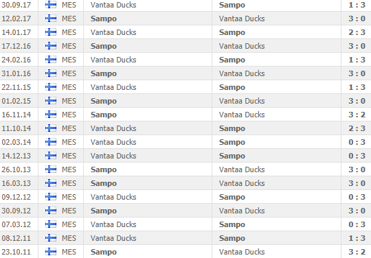Την ευφορία που επικρατεί στο στρατόπεδο των Βάνταα Ντακς, ως αποτέλεσμα των 2 κολλητών πρωταθληματικών επιτυχιών, θα την κόψει η Σάμπο, που «εκνευρίστηκε» από την εντός έδρας ήττα που υπέστη σε θρίλερ (2-3) από την – πρωτοπόρο Λεντοπαλοσέουρα και περιμένει με κακές (για τον αντίπαλο) διαθέσεις το επόμενο παιχνίδι (δηλαδή το σημερινό), για να δώσει απαντήσεις.