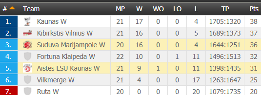 Την περασμένη αγωνιστική, η παρέα των Gardner & McCray, υπέστη ήττα ΣΟΚ (69–73) μέσα στη Μαριούπολη, από την Φορτούνα Κλαϊπέντα και αυτό η Κιμπιρκστίς το εκμεταλλεύθηκε και την έριξε – με ένα βέβαια παιχνίδι περισσότερο – στην 3η θέση της βαθμολογίας.
