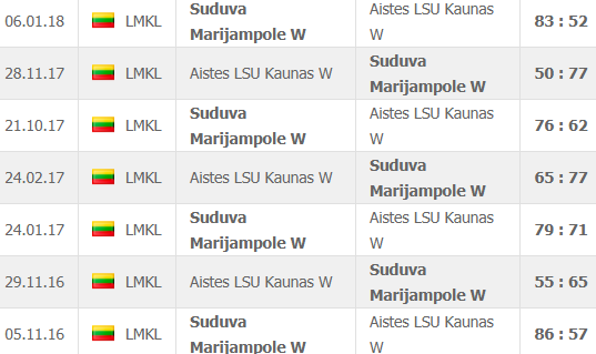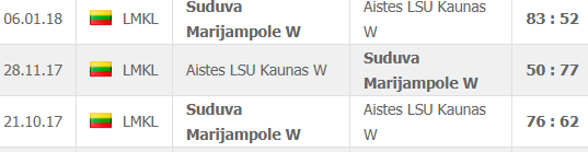 | ΛΙΘΟΥΑΝΙΑ (LMKL-ΜΠΑΣΚΕΤ-ΓΥΝΑΙΚΕΣ) | ΑΪΣΤΕΣ-ΣΟΥΝΤΟΥΒΑ (27/2) | 2 (1,11) | 🙂 (62-68) | 50 | 56 | |