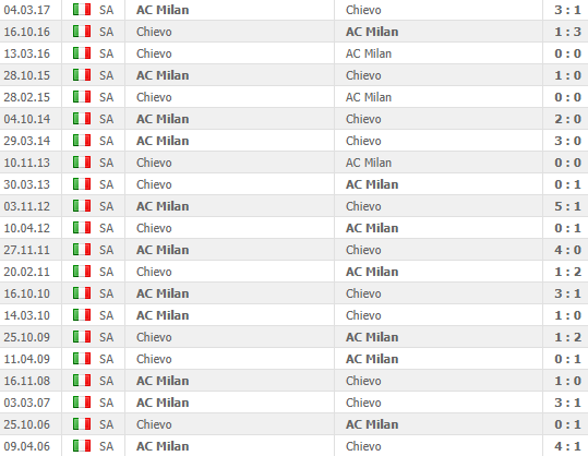Με αφετηρία καταμέτρησης το έτος 2006 και σε σύνολο 21 αναμετρήσεων, η Μίλαν έχει παραχωρήσει στην Κιέβο, μόλις 3 ισοπαλίες.