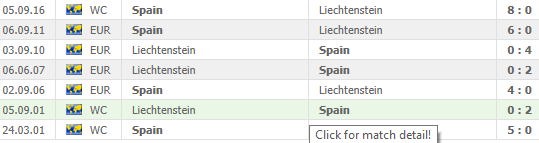 Μοιάζει με ζαριά η πρόταση μας σε NO GOAL, καθώς αρκεί σε ένα παιχνίδι μια στραβοκλωτσιά για να μπει ένα τέρμα, αύριο όμως για να σκοράρει το Λιχτενστάιν, θα πρέπει πρώτα να απειλήσει την Ισπανία. Η προϊστορία «αρνείται» εμφατικά το χαρακτήρα της «ζαριάς» και δεν έχω λόγο, να την αμφισβητήσω, σε ένα δείγμα που δεν είναι καθόλου μικρό και είναι και σαφέστατα, αποκαλυπτικό, με συνολικό Goals Average : 31-0 (!!!) για τη Φούρια Ρόχα…