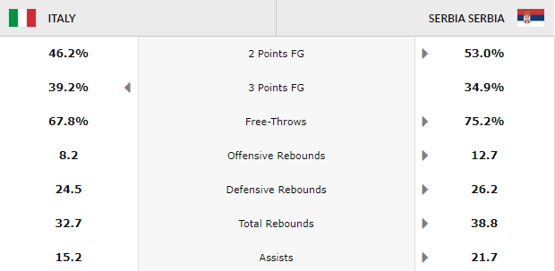 ΕΥΡΩΠΗ (EUROBASKET 2017 ΙΤΑΛΙΑ-ΣΕΡΒΙΑ (13/9) 2 (1,36) 🙂 (67-83) 44 60