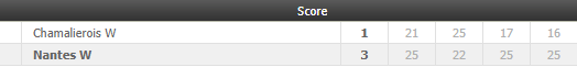 | ΓΑΛΛΙΑ (PRO F-ΒΟΛΕΪ-ΓΥΝΑΙΚΕΣ) | ΝΑΝΤ-ΣΑΜΑΛΙΕΡ (2/2) | 1 (1,20) | 🙂 (3-0) | 63 | 76 | |