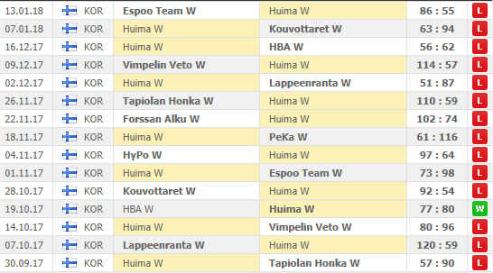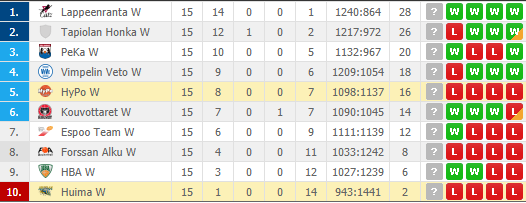 Στις 11 έχουν φτάσει οι – σε σειρά – ήττες της ομάδας που εκπροσωπεί την πόλη Äänekoski, ενώ το συνολικό της ρεκόρ, αποτυπώνεται σε 1-14.