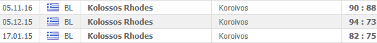 | ΕΛΛΑΔΑ (BASKET LEAGUE) | ΚΟΛΟΣΣΟΣ ΡΟΔΟΥ-ΚΟΡΟΙΒΟΣ ΑΜΑΛΙΑΔΑΣ (14/2) | 1 (1,22) | 🙂 (86-71) | 53 | 65 |