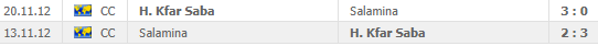 | ΕΥΡΩΠΗ (CHALLENGE CUP-ΒΟΛΕΪ) | ΧΑΠΟΕΛ ΚΦΑΡ ΣΑΒΑ-ΝΕΑ ΣΑΛΑΜΙΝΑ (22/11) | 1 (1,15) | 🙂 (3-0) | 70 | 81 | |